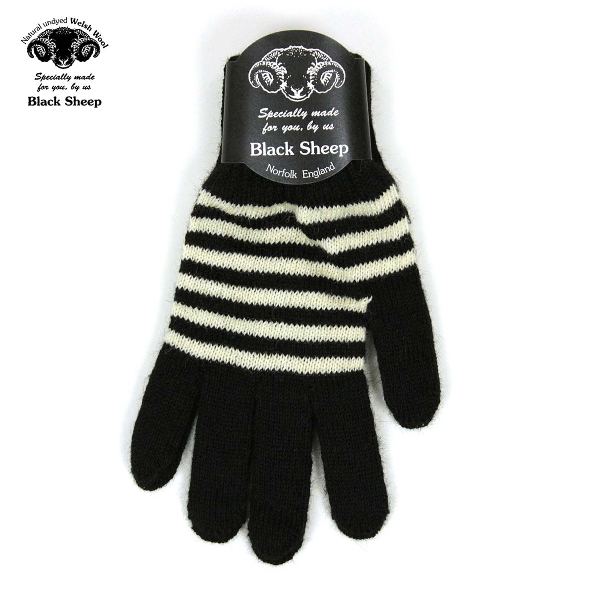 ブラックシープ BLACK SHEEP メンズ 手袋 M STRIPE KNIT GLOVE SGL07B JET-ECRU A8...