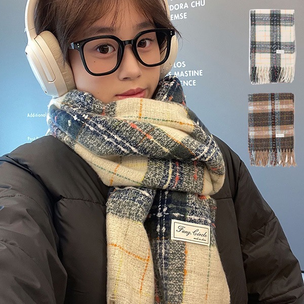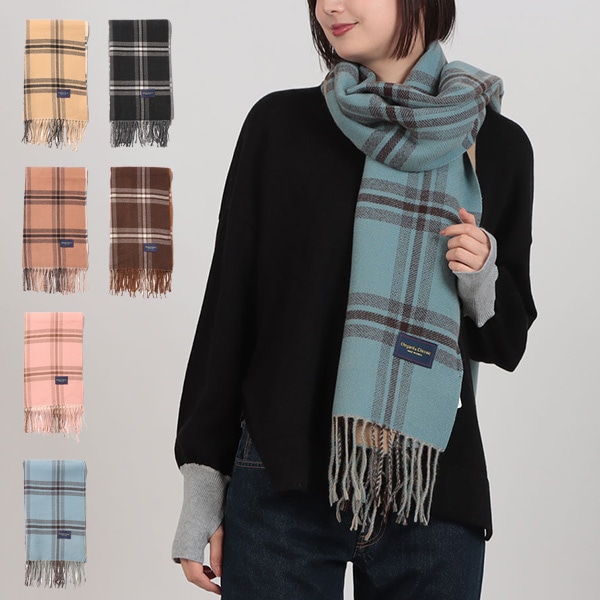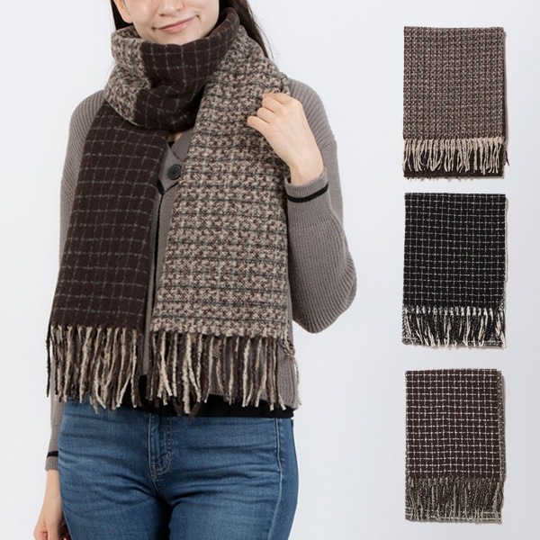 フリンジチェック柄マフラー