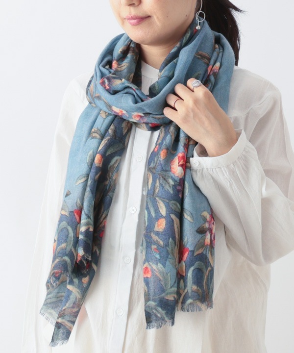 ウールシルク 花柄プリントショール