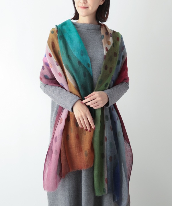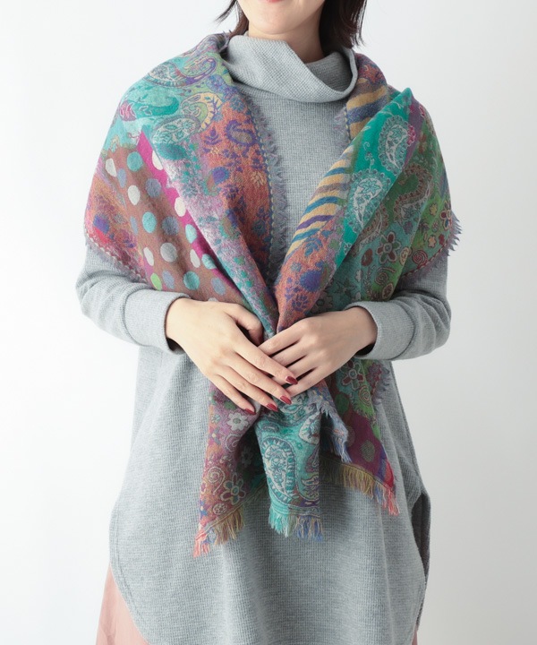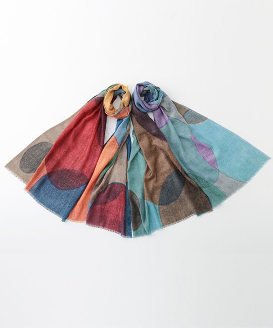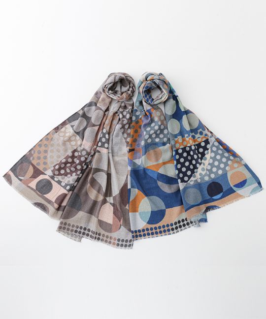 ウール混 ドット&幾何学柄ショール
