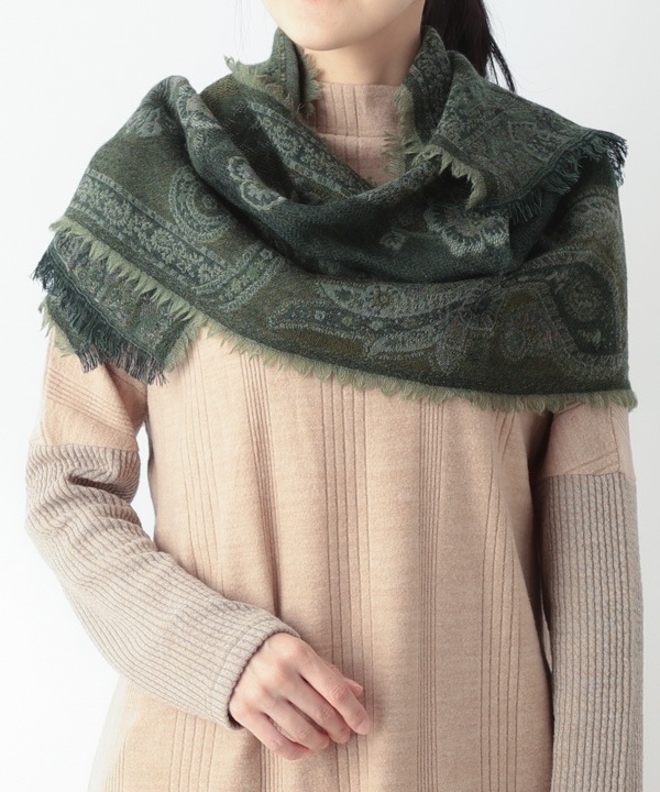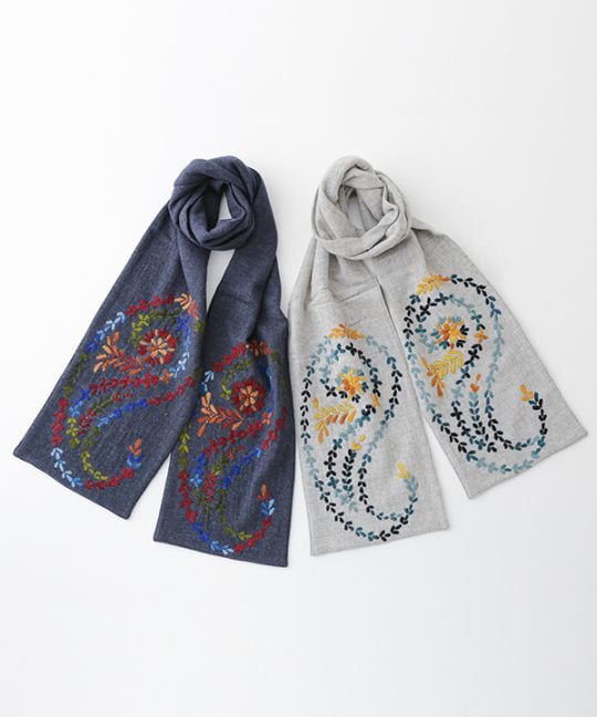 ウールコットン ペイズリー柄ハンド刺繍ショール