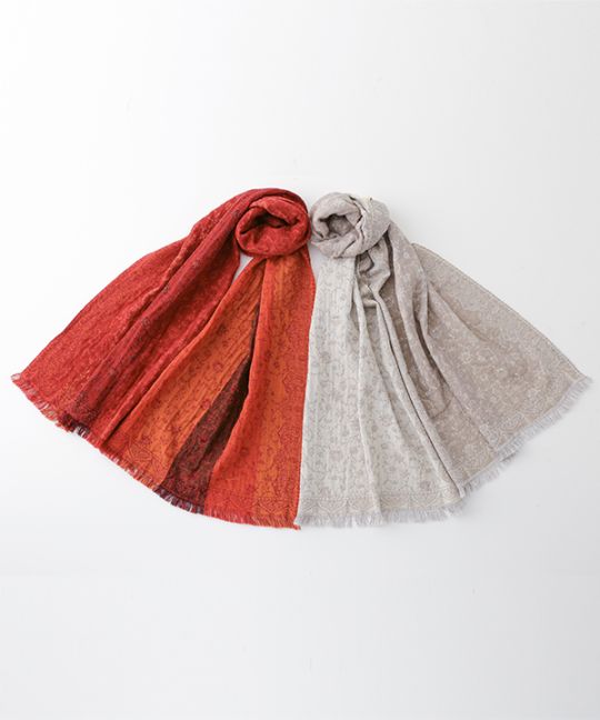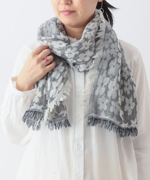 コットンウール リーフ柄ジャガードショール