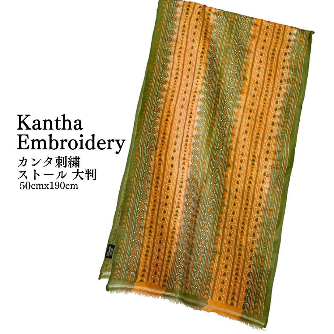 InDream カンタ 刺繍 ストール50×190cm インド 刺し子 インテリア マフラー グリーン クリスマス ギフト おしゃ...
