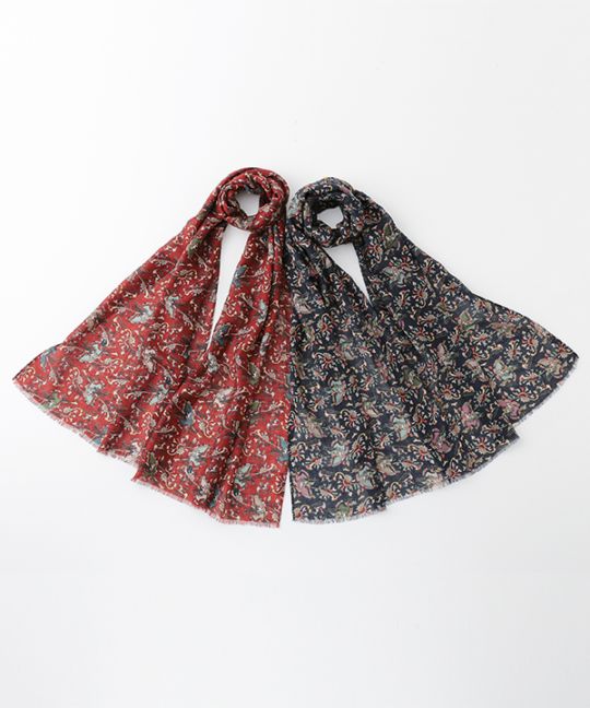 ウール混 オリエンタル柄プリントショール