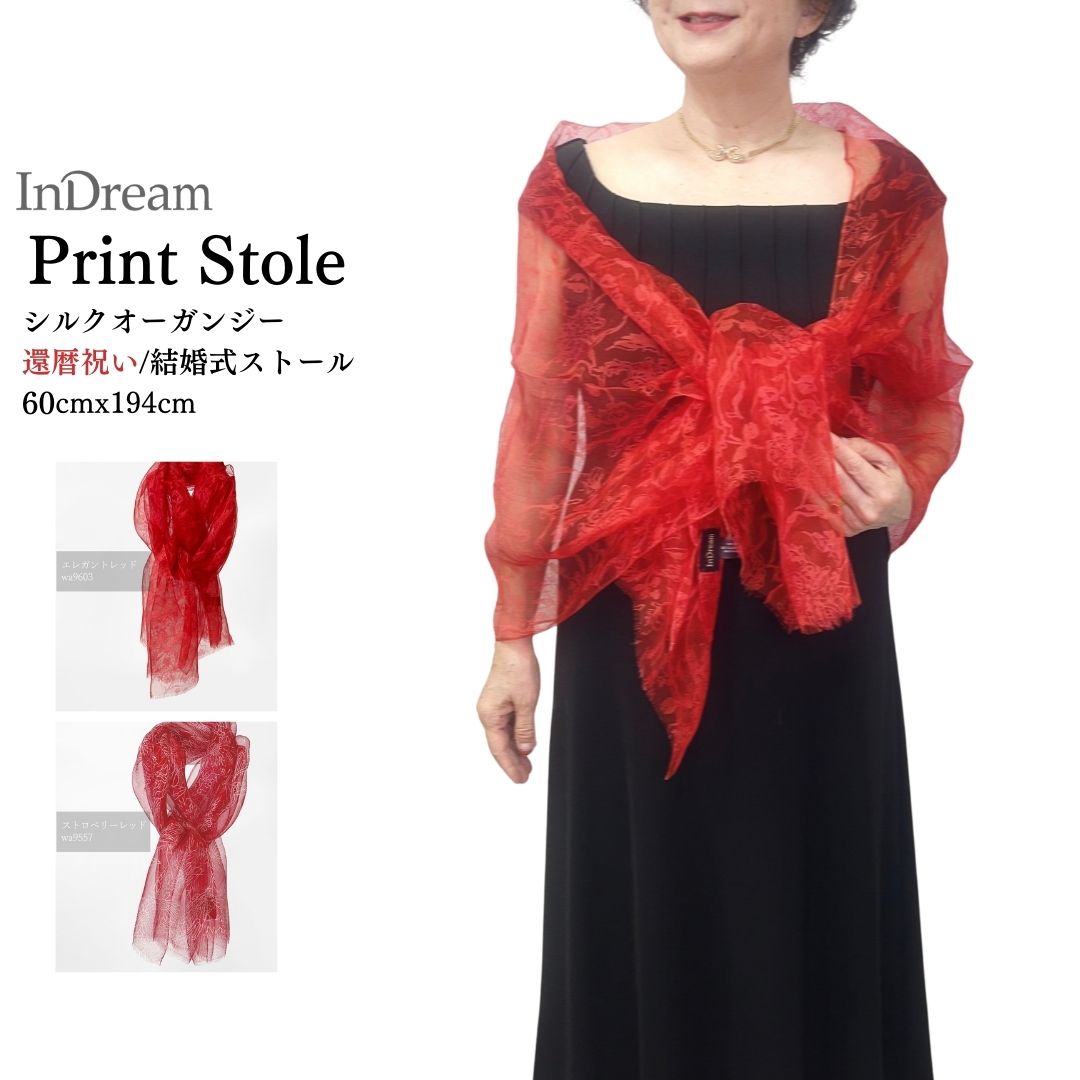 InDream シルクプリントストール 赤 還暦祝い クリスマス ギフト おしゃれ 誕生日 プレゼント スカーフ