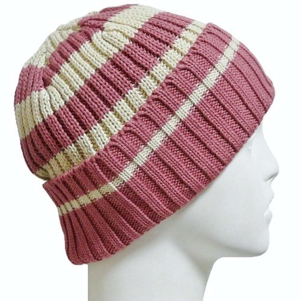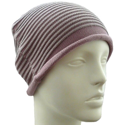【抗がん剤治療】【医療用帽子】【ケア帽子】 ボーダーニット:ピンク