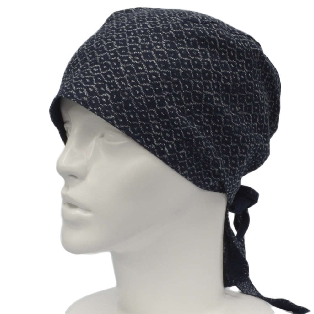 【抗がん剤治療】【バンダナ】【ケア帽子】 バンダナタイプ:よろけ波紺