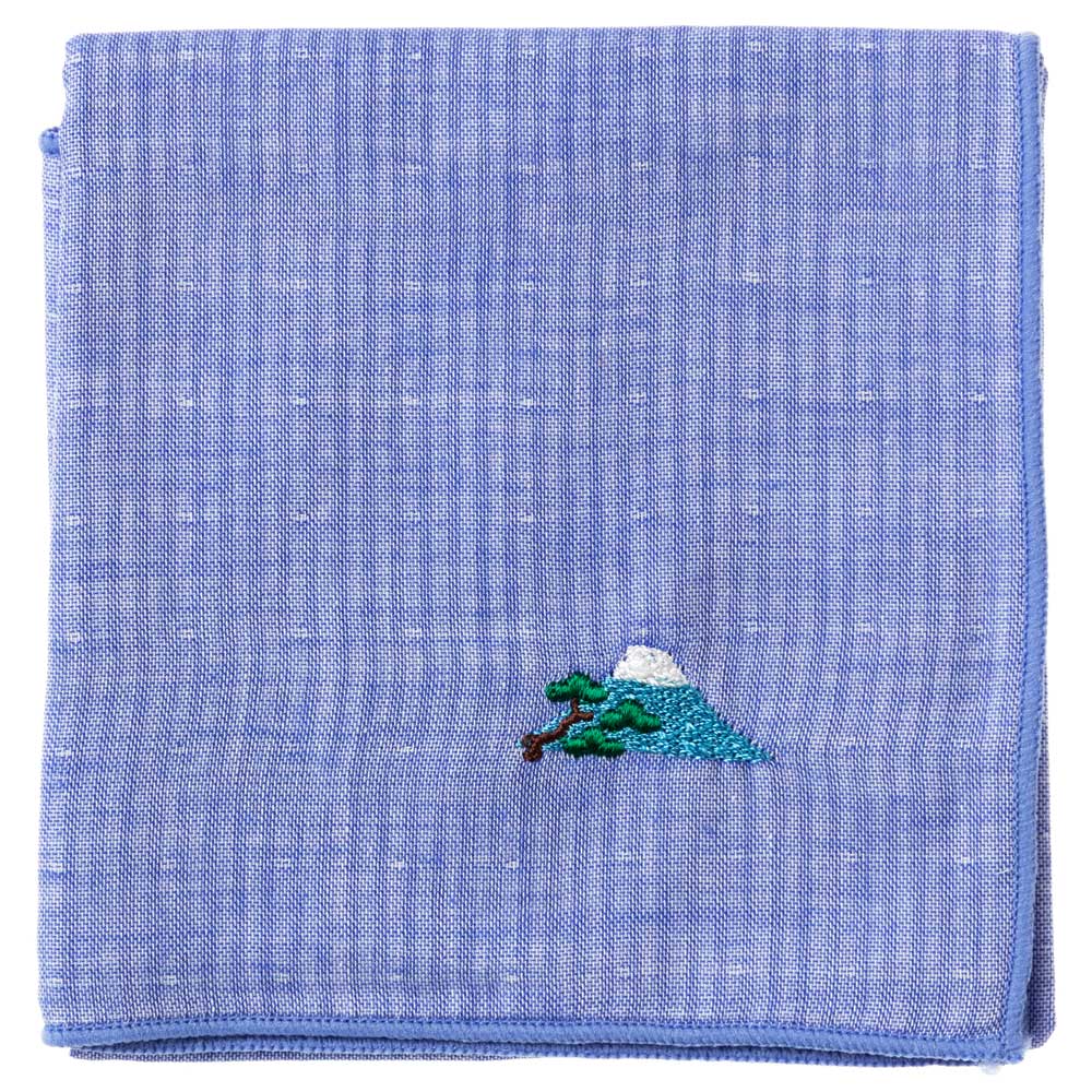 スーベニール 富士山ハンカチ 松(ストライプ・ブルー) 刺繍入りガーゼハンカチ Japanese pattern embroide...
