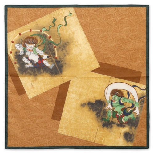 綿ハンカチ 風神雷神 カラシ 47.5×47.5cm Fujin & Raijin Handkerchief of a Japa...