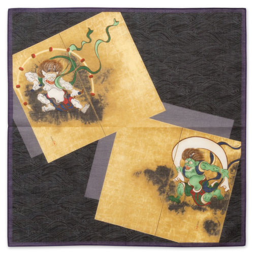 綿ハンカチ 風神雷神 クロ 47.5×47.5cm Fujin & Raijin Handkerchief of a Japan...