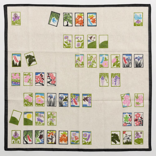 花札 ハンカチ (1845) 心の木版画・高橋幸子 58×58cm綿ハンカチ Cotton handkerchief