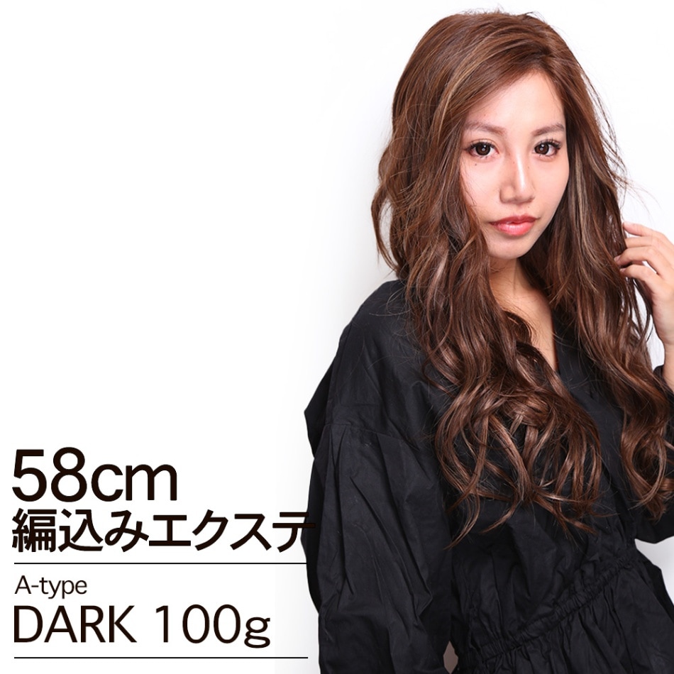 【A-TYPE】編込みエクステ ダークカラー 58cm 100g