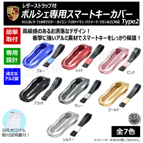ポルシェ 専用 スマートキーカバー キーケース Type2 アルミ製 レザーストラップ付 キーカバー porsche 911 カレ...