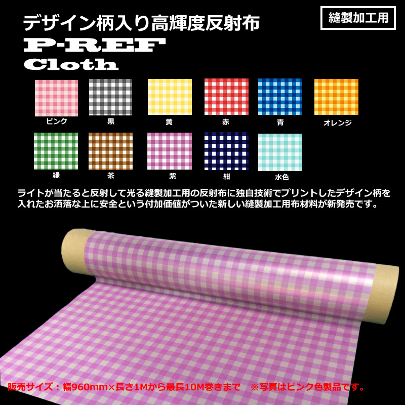 【2016年NEW】デザイン柄入り 高輝度反射布 P-REF Cloth ギンガムチェック柄 幅960mm×長さ1Mから10Mまで...