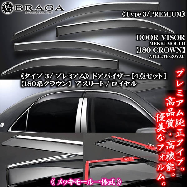 ドアバイザー【180系クラウン/アスリート・ロイヤル】[タイプ3/プレミアム]4点セット[純正タイプメッキモール一体型]サイドバイ...