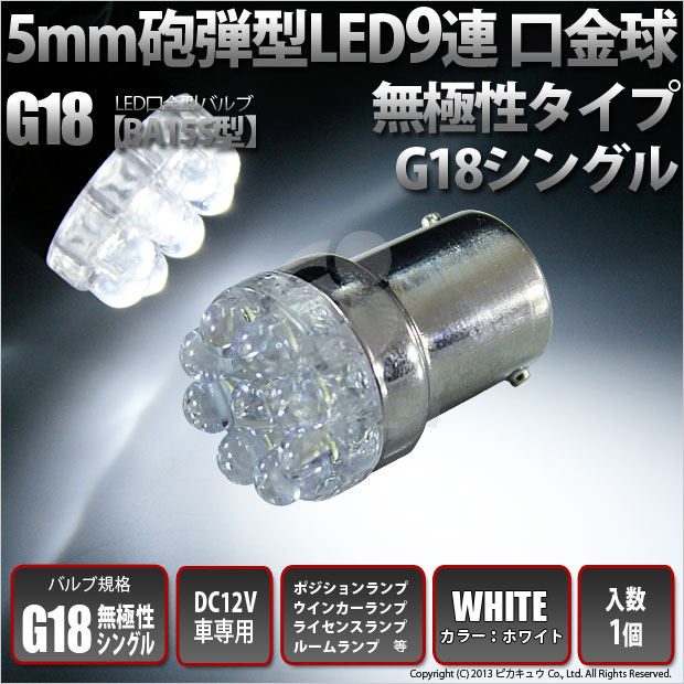【即納】【メール便可】G18(BA15s) 砲弾型LED9連 シングル口金球 ピン角180° LEDカラー:ホワイト6000K ...