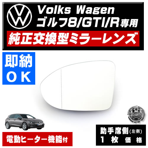 ドアミラー レンズ フォルクスワーゲン ゴルフ 8 GTI R 対応 【Volks Wagen 社外品 助手席側 左側 純正交換型...