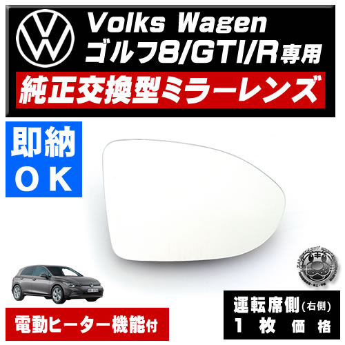 ドアミラー レンズ フォルクスワーゲン ゴルフ 8 GTI R 対応 【Volks Wagen 社外品 運転席側 右側 純正交換型...