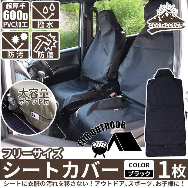 【即納】シートカバー フリーサイズ ポケット付き 超厚手600D生地 撥水加工 裏面PVCコーティング カラー:ブラック 1枚
