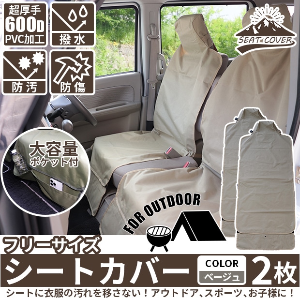 シートカバー フリーサイズ ポケット付き 超厚手600D生地 撥水加工 裏面PVCコーティング カラー:ベージュ 2枚 送料無料