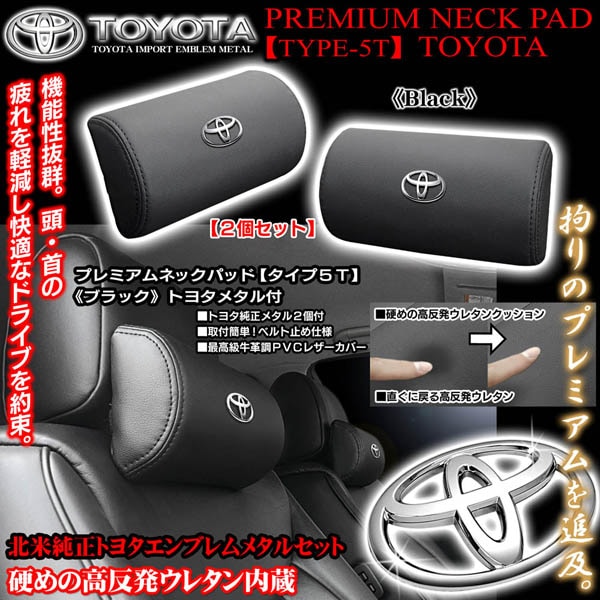 トヨタメタル付《タイプ5T》プレミアムネックパッド【ブラック/2個セット】高反発ウレタン内蔵牛革調PVCレザー製/ブラガ