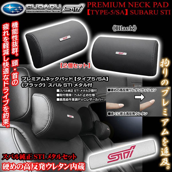 スバル純正STIメタル付《タイプ5/SA》プレミアム ネックパッド【ブラック/2個セット】高反発ウレタン内蔵牛革調PVCレザー製/...