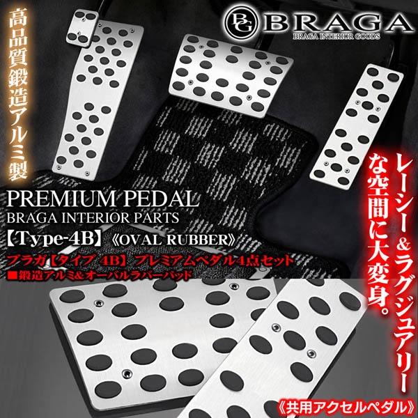 【タイプ4B】プレミアム鍛造アルミペダル/無印[共用アクセルペダル]オーバル型ノンスリップラバー付4点/ブラガ