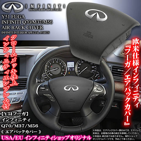 【エアバックカバー/ブラック】Y51フーガ専用/欧米仕様Q70/M37/M56インフィニティ/INFINITIパーツ/取説付/ブラ...