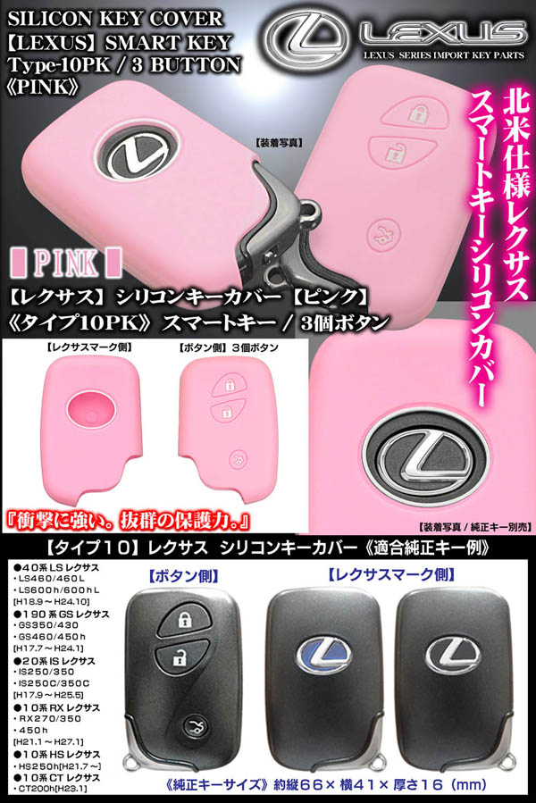 【タイプ10PK】レクサス シリコン キーカバー《ピンク》/スマートキー3個ボタン/マーク用穴付/傷防止,キズ隠し,保護/北米仕様...