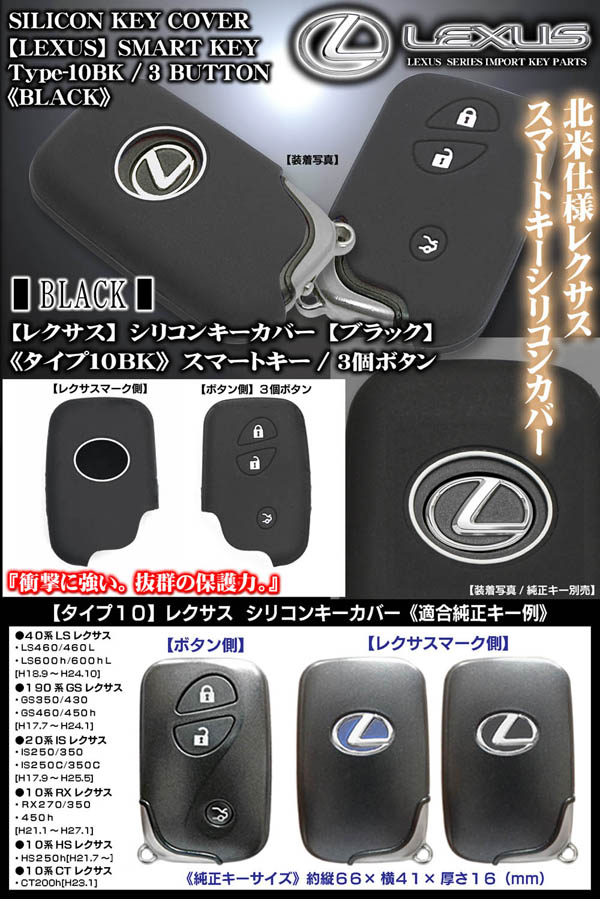 ブラガ/レクサス車用互換品シリコン キーカバー【タイプ10BK】《ブラック》スマートキー3個ボタン/マーク用穴付/傷防止,キズ隠し...