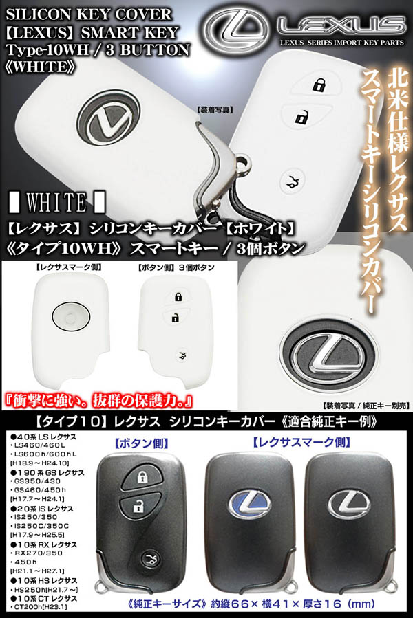 ブラガ/レクサス車用互換品シリコン キーカバー【タイプ10WH】《ホワイト》スマートキー3個ボタン/マーク用穴付/傷防止,キズ隠し...