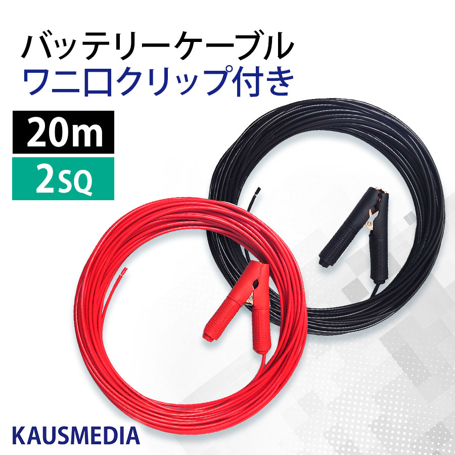 20m ワニ口クリップ付き 2SQ ケーブル KIV カーバッテリー 電気柵 アリゲータークランプ 銅 赤黒 1セット