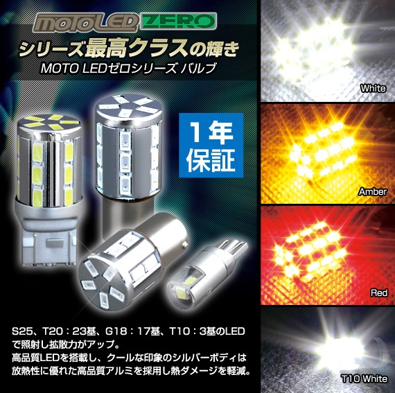 【バイク用】MOTO LED ZEROゼロ 360°SMD ≪G18≫シングル(ホワイト) ≪2個入≫ 【D-1667】