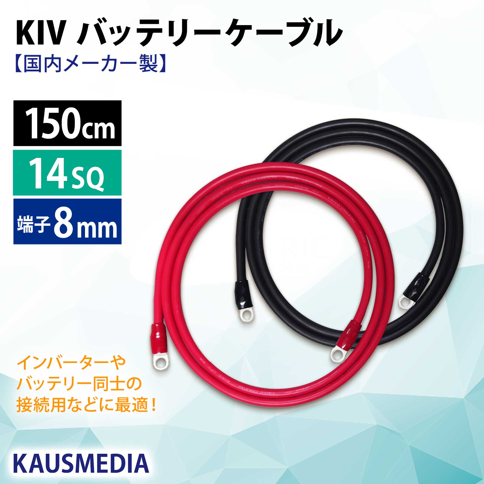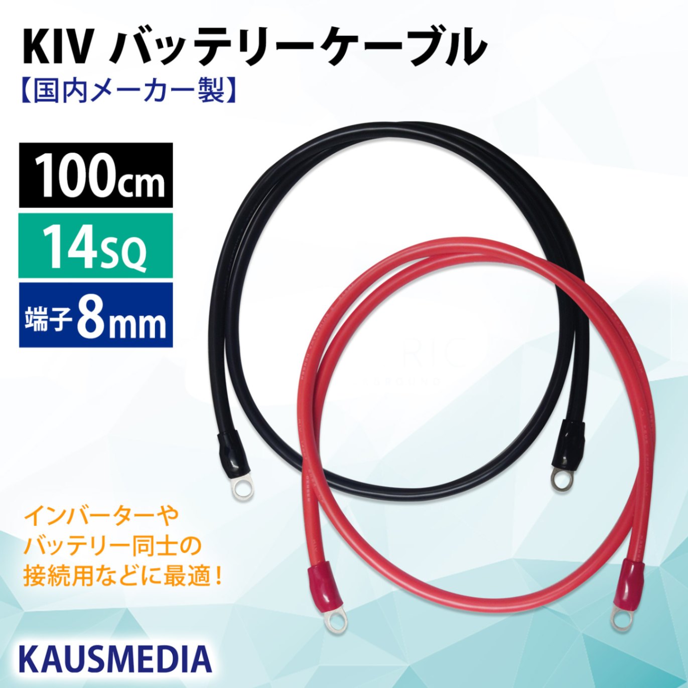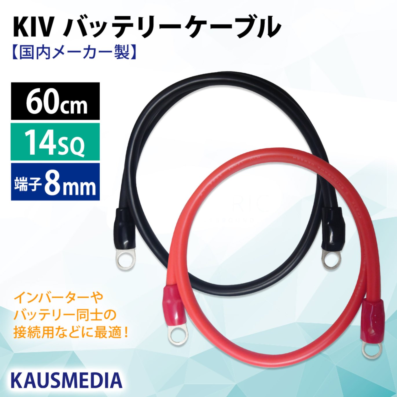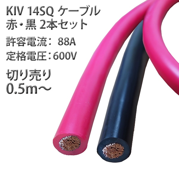 14SQ KIV ケーブル 国内メーカー製 バッテリーケーブル インバーター接続用 赤 黒 各1本 セット 0.5m切売り 電気配...