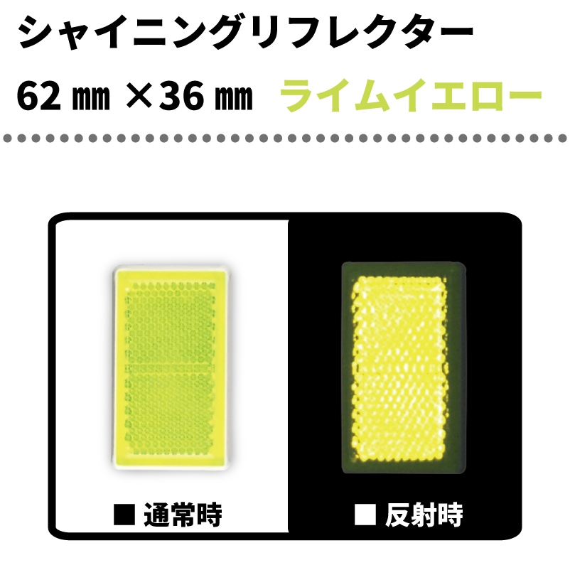 【ライム】 シャイニングリフレクター 42mmカク 程よい大きさの正方形反射板 両面テープ:あり/なし