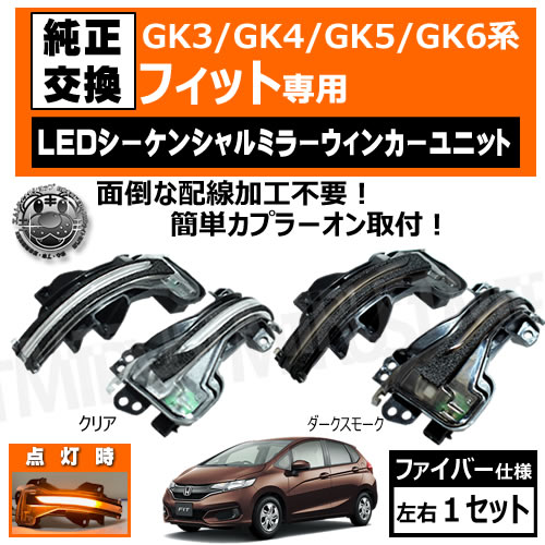 GK3 GK4 GK5 GK6 フィット 対応 LED シーケンシャル ドアミラー ウィンカーユニット 左右セット クリア ダーク...