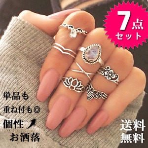 送料無料 買得く7点リングセット 指輪セット アンティーク調 リング 指輪 ペア オシャレ 欧米 海外 人気 レディース アクセサ...