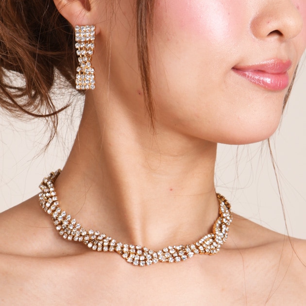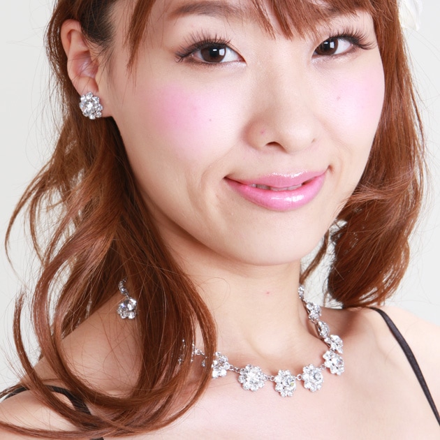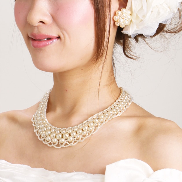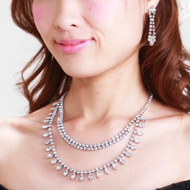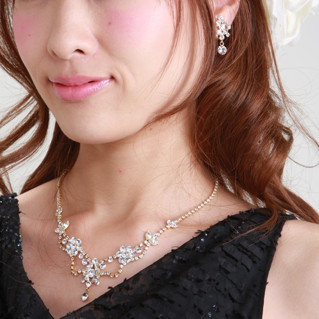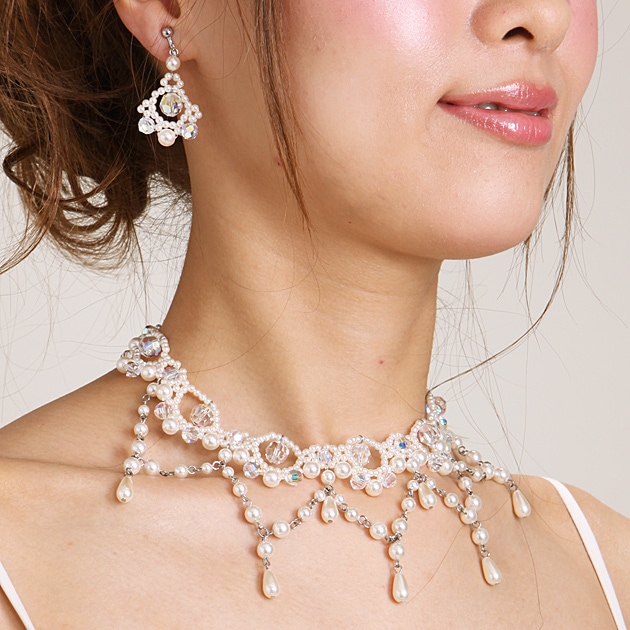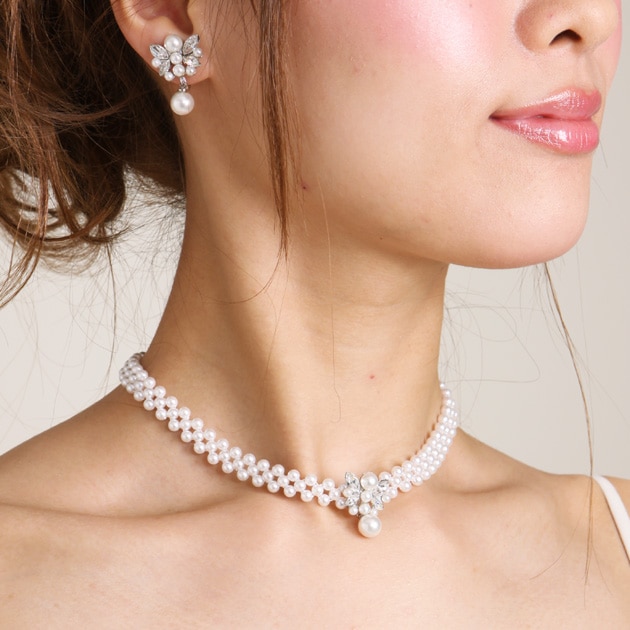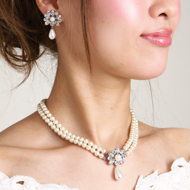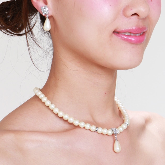 ネックレス&イヤリング レンタル オフパール&クリスタル mh1905091