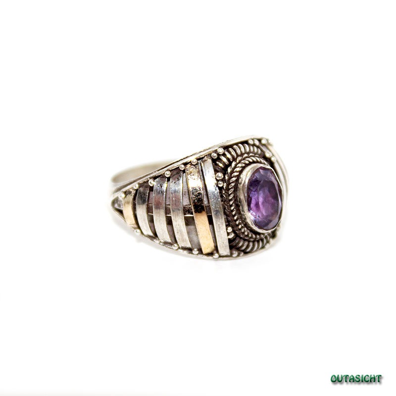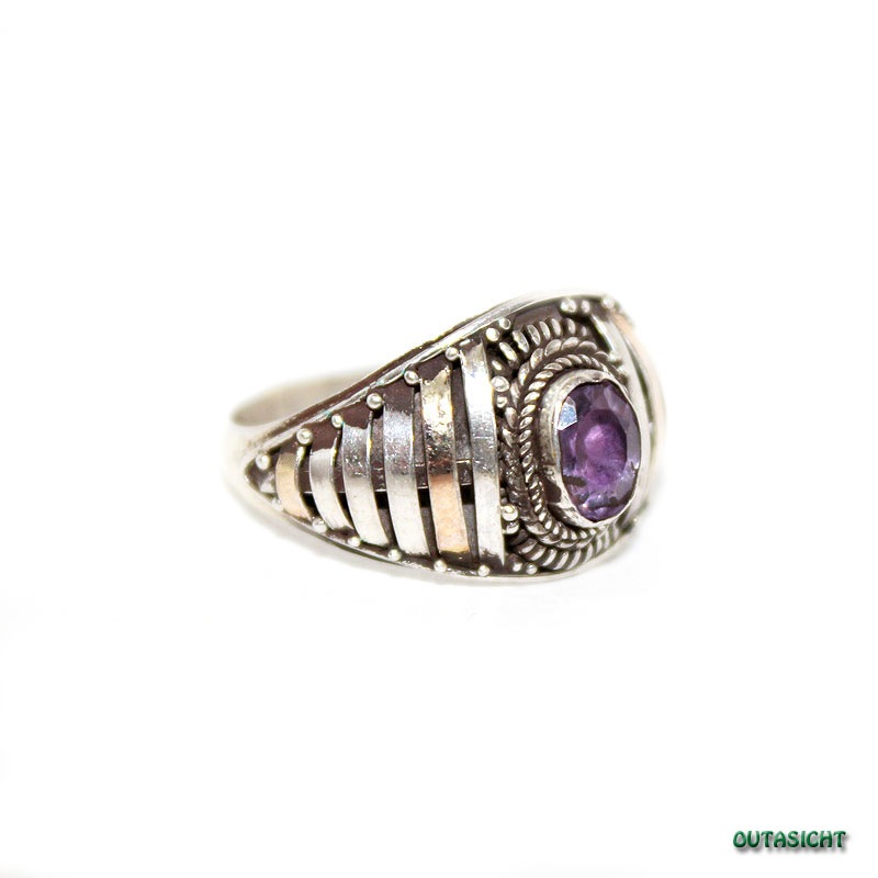 シルバーリング 天然石 アメジスト 13.5号 バリ島 インドネシア SRSN-43