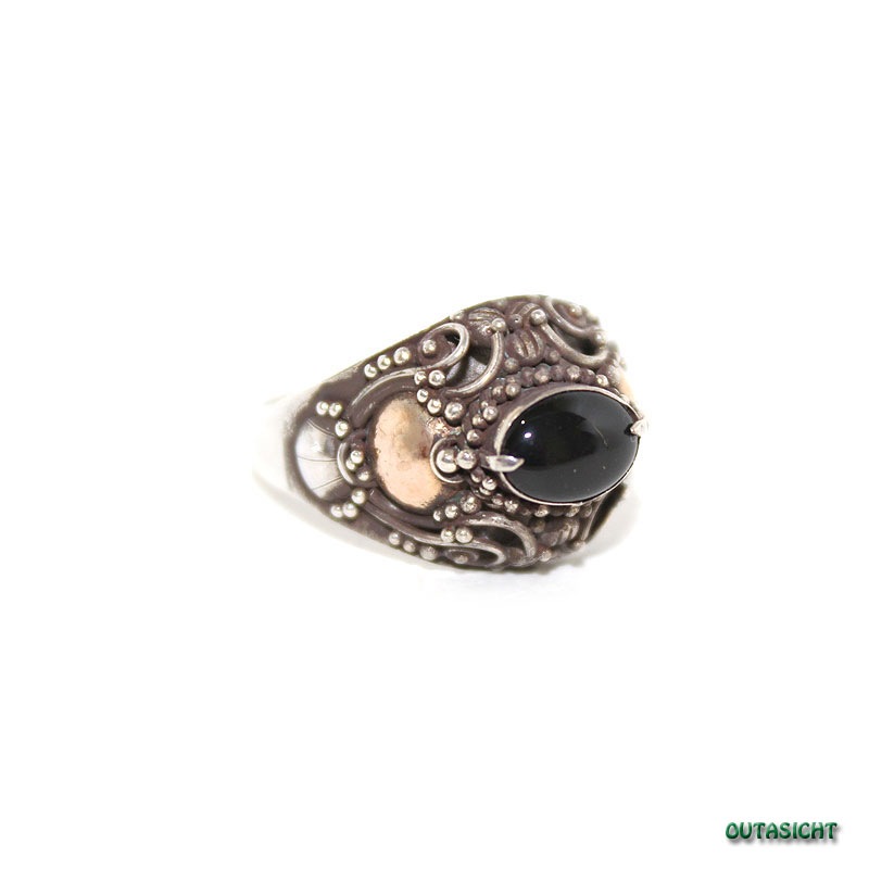 シルバーリング 天然石 ブラックオニキス 16号 バリ島 インドネシア SRSN-64