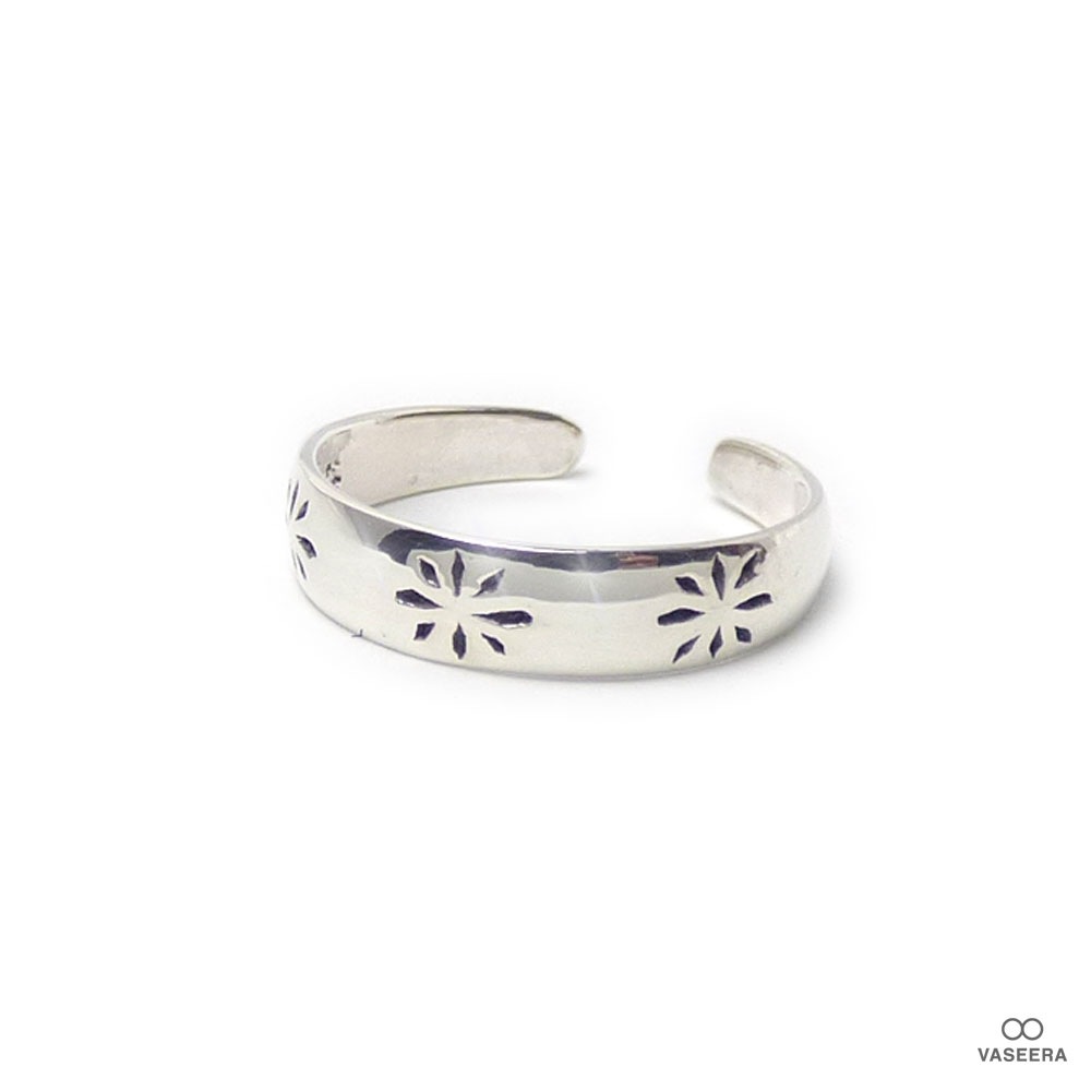 フラワー刻印 甲丸鏡面仕上げ シルバー925 ファランジリング(ミディリング)/トゥリング 【SILVER925/指輪】