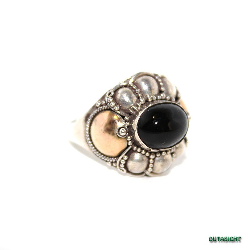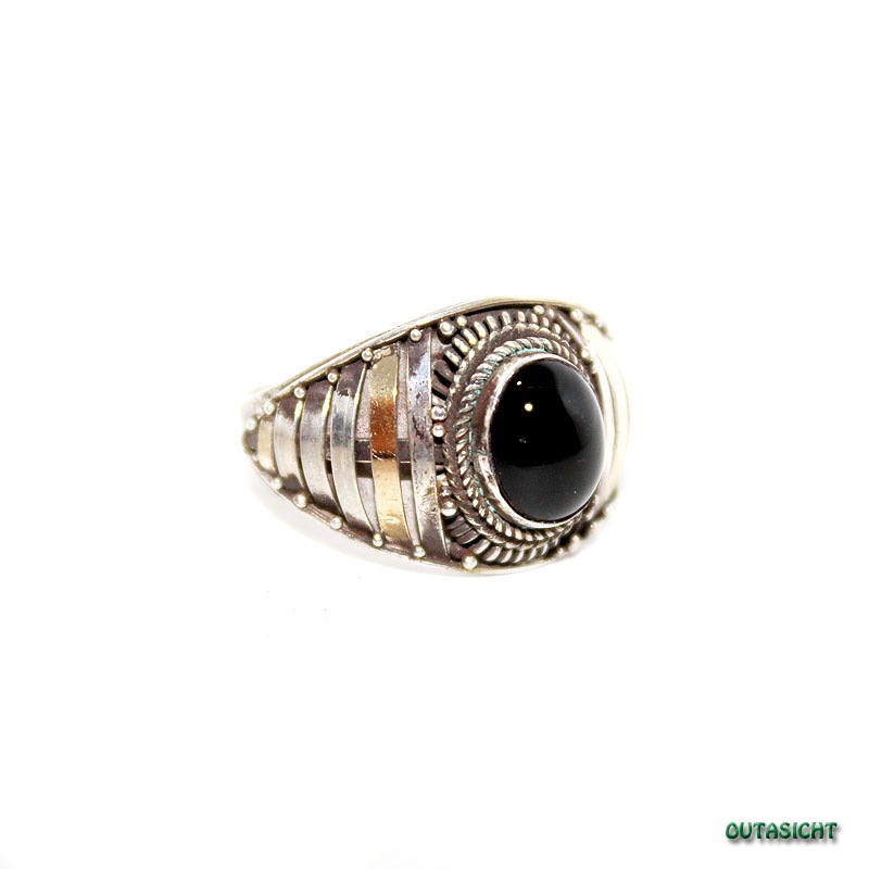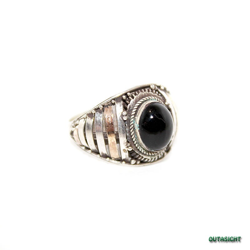 シルバーリング 天然石 ブラックオニキス 13号 バリ島 インドネシア SRSN-45