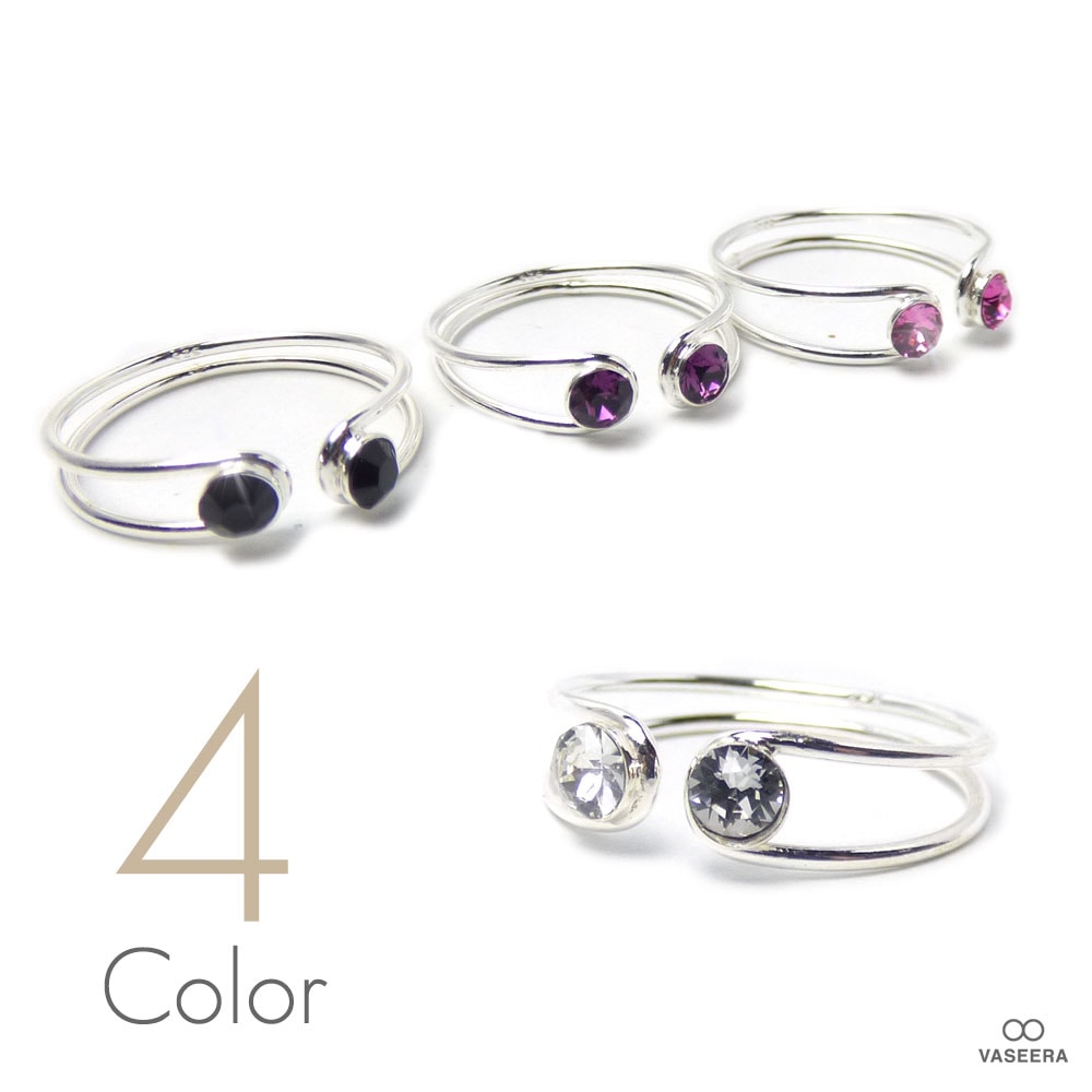 \"W\"スワロフスキークリスタル フロントオープンデザイン シルバー925 ファランジリング(ミディリング)/トゥリング 【S...