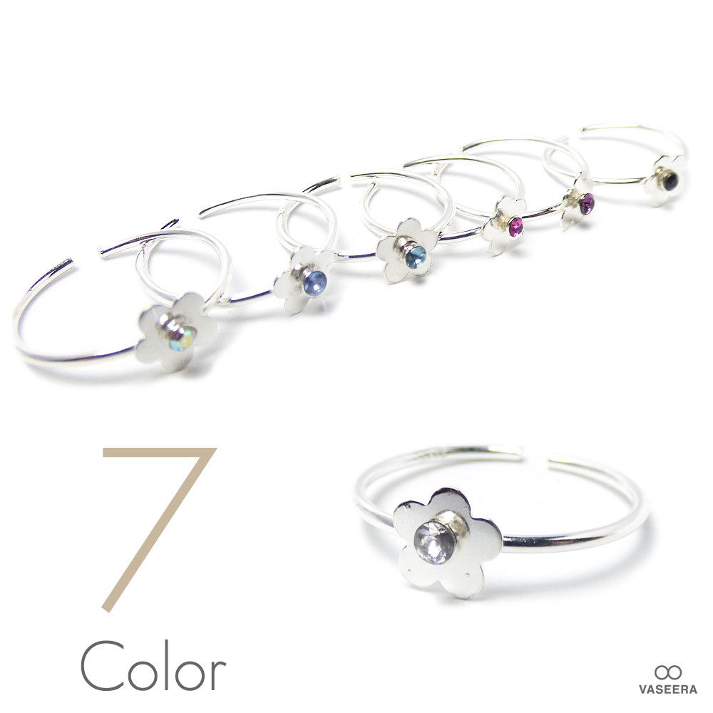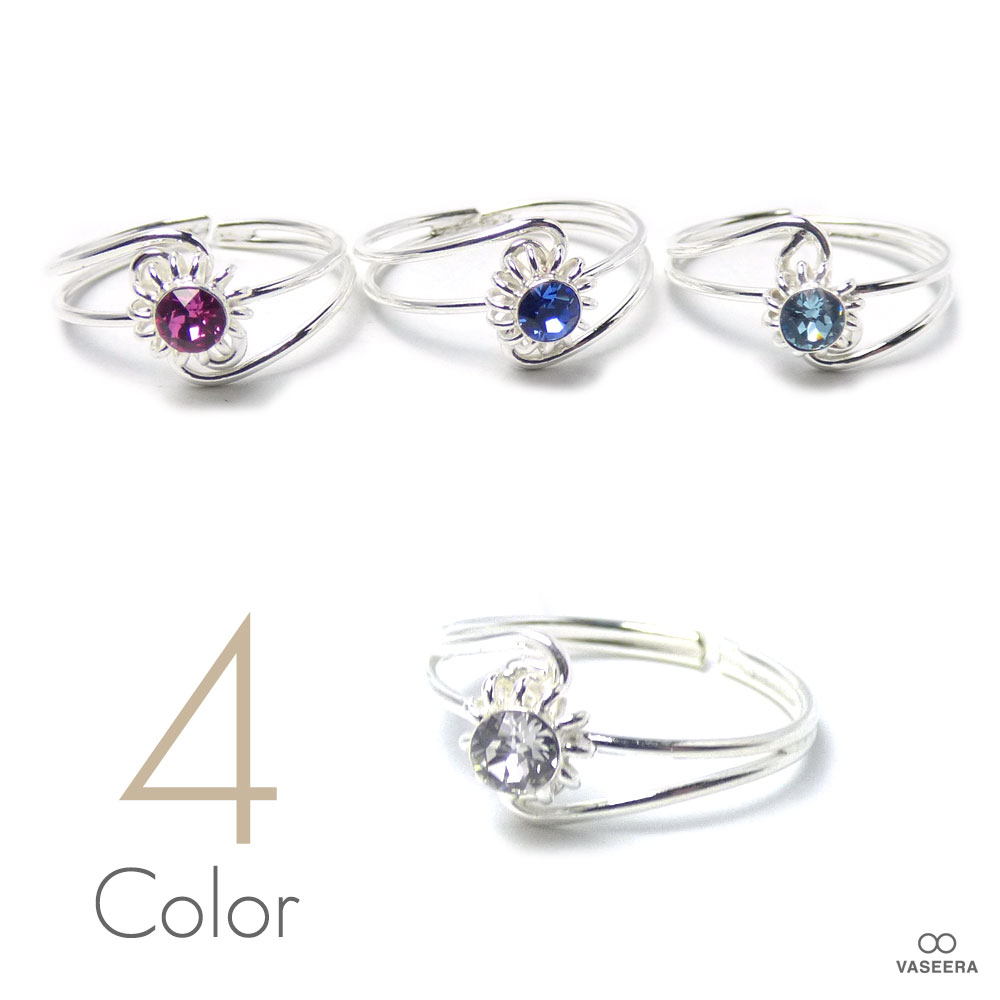 スワロフスキー フラワー 1mmワイヤーフレーム シルバー925 ファランジリング(ミディリング)/トゥリング 【SILVER92...