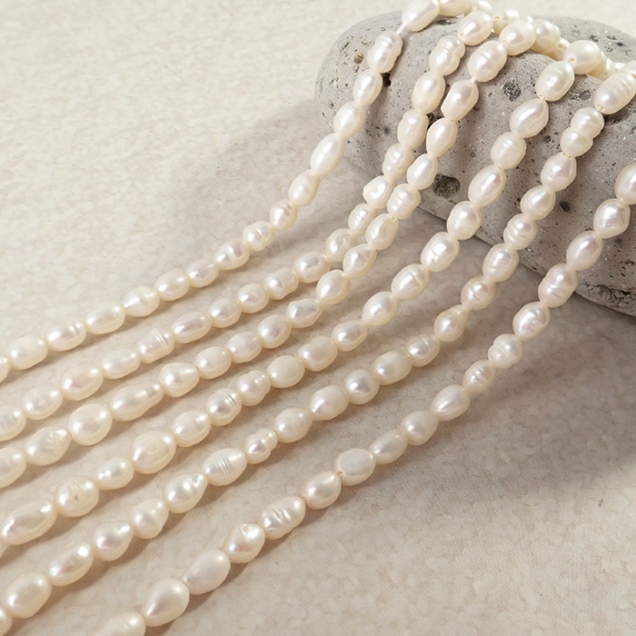 【有核 淡水真珠 約4×6mm】ホワイト ライス 天然パールビーズ 約34cm連 ハンドメイド アクセサリーパーツ