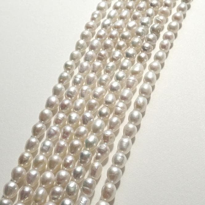 【242. ポテト 淡水パール ビーズ 連】 ベビーパール 約4*3mm ホワイト 約38cm 淡水真珠 国内発送