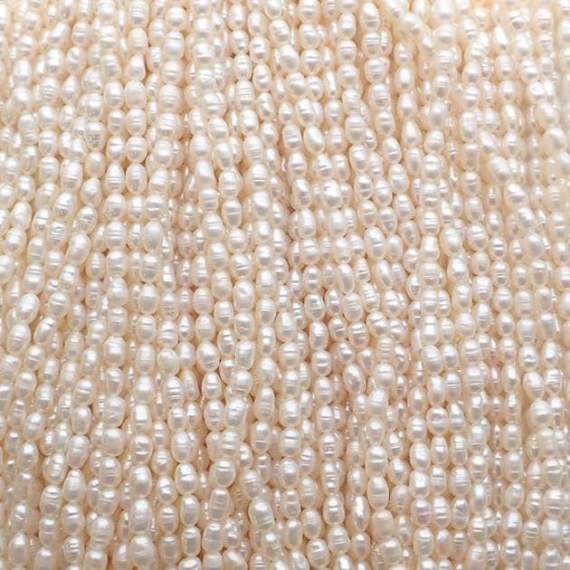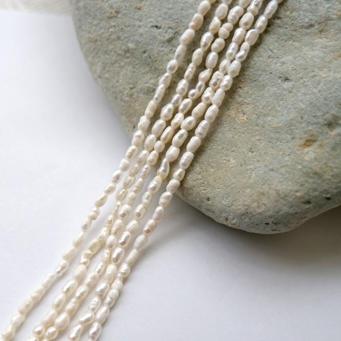 【244. ライス 淡水パール ビーズ 連】 ベビーパール 約2*3mm ホワイト 約35cm 淡水真珠 国内発送