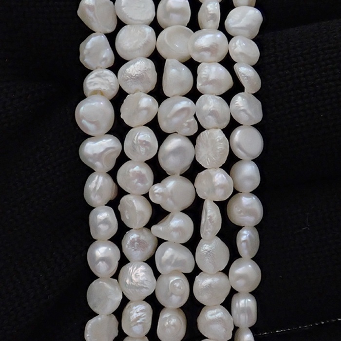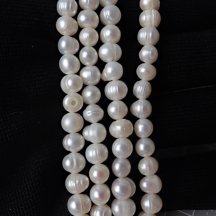 【有核 淡水真珠 約7×6mm】ホワイトカラー 天然パールビーズ 約35cm連 ハンドメイド・アクセサリー素材
