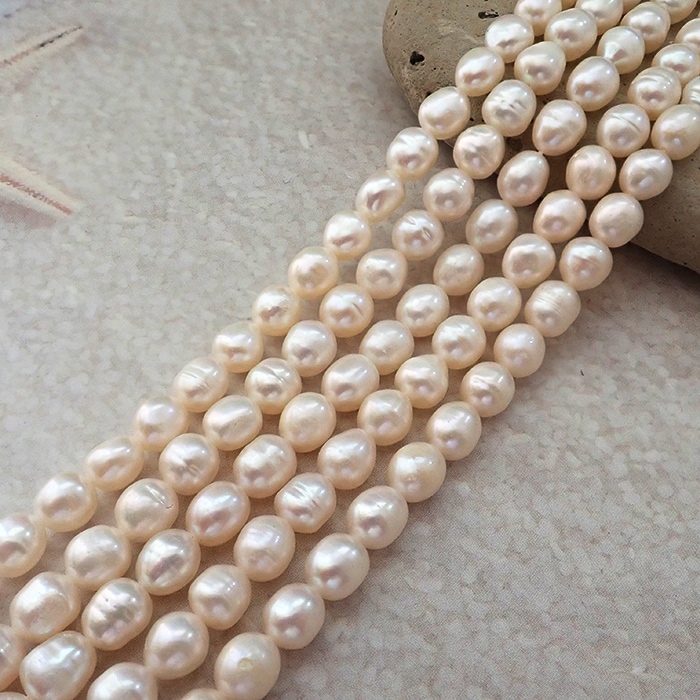 【227. ポテト型 淡水パール 連】約 6-6.5mm 1本(約40cm)セミラウンド ビーズ 国内発送 淡水真珠