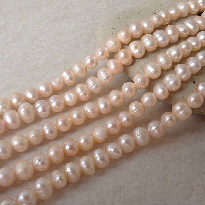【有核 淡水真珠 約6mm】ピーチ系 セミラウンド 天然パールビーズ 約35cm連 アクセサリーパーツ